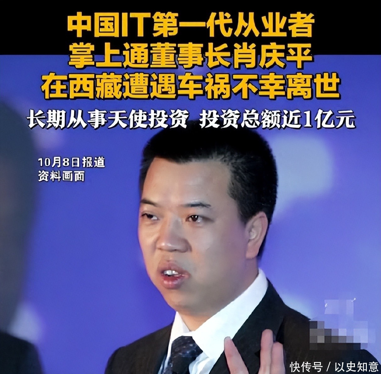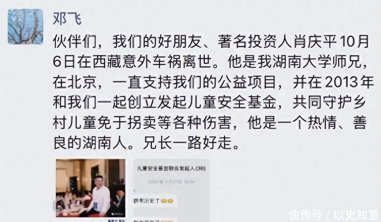 10月6日,西藏传来悲讯:中国首批IT从业者、资深天使投资人肖庆平在自驾途中遭遇交通事故,经全力抢救无效去世,终年59岁。